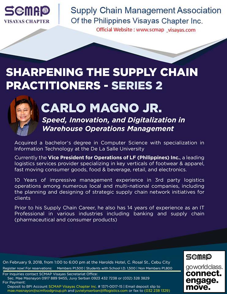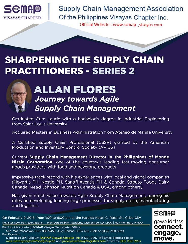 Email deposit slip to mae.masnayon@scmfoodgroup.ph and juvielynserban@lflogistics.com or fax to (032 238 1329)